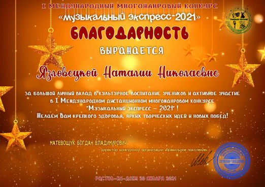 + благодарность за высокое педагогическое и мастерство и подготовку участника конкурса