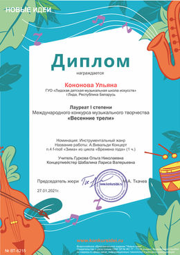 Поздравляем победителей VI Республиканского фестиваля- конкурса детского искусства "ЛьВёнок" (Лидский львёнок) "эстрадный вокал"Аленович Валерию-диплом лауреата II степениЛагута Лауру-диплом дипломанта I степениучитель Бирук А.С.Князеву Анастасию-диплом дипломата I cтепениЛупач Варвару-диплом дипломата III степенируководитель Князев В.А."народный вокал"Лагута Лауру-диплом лауреата I степениучитель Бирук А.С.