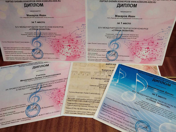 диплом за высокое педагогическое мастерство и развитие национальных традиций музыкального искусства Беларуси
