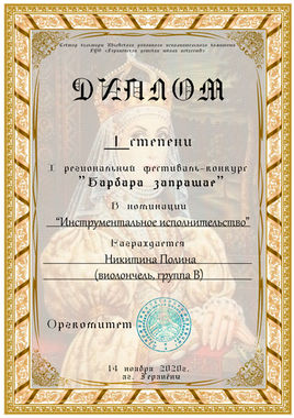 Кухарская Анастасия - диплом дипломанта 3 степени